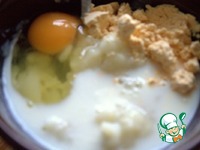 Вбить яйца (одно яйцо я заменила яичным порошком-1 ст. л.) и влить молоко или сливки. |