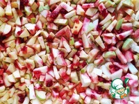 В первую очередь сделаем начинку. Яблоки порезать на маленькие кусочки и перемешать с сахаром. |