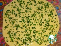 Смазать маслом, посыпать зеленью и чесноком. |