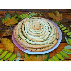 Затем обматать вокруг первой скрученной полоски вторую, и т. д. – по спирали наматываем все остальные. Середину хлеба немного придавить ладонью. Оставить на 20 минут на расстойку. |
