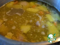 В бульон выложить репу, морковь. Варить на малом огне. |