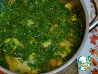 Добавить рубленую зелень, посолить по вкусу, дать закипеть и убрать с огня. |