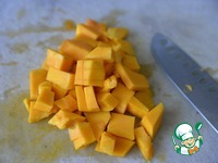 Тыкву чистим, режем небольшими кусочками и отправляем в микроволновку на 3 минуты. Мощность у меня 800 Вт. |