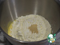 Муку просеять, смешать с солью, сахаром, дрожжами. |