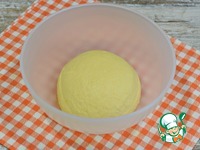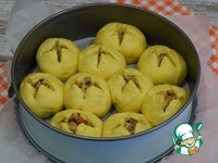 Подошедшее тесто выложить на рабочую поверхность, смазанную растительным маслом, обмять, разделить на 10 (11,12...) равных частей. |