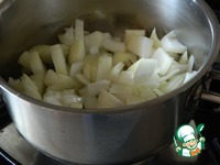 Первым делом кладем морковь и варим ее 5 минут. Потом закладываем картофель, через 5 минут кладем лук. |