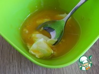 Добавить муку, соль, 2 ст. л. воды, снова хорошо перемешаем. |