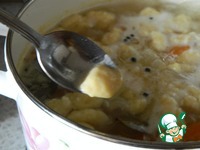 Описание: Предлагаю Вам рецепт супа с нежнейшими клецками. Секрет этой нежности заключается в составе теста. А тесто для них состоит из желтков, масла сливочного и муки. Консистенция чуть гуще, чем на оладьи. Получаются мягкие, нежные клецки, это не кусочек теста, а что то воздушное и невесомое. Суп с такими клецками можно варить и на рыбном и на мясном бульоне на Ваш выбор. Я предпочитаю рыбный. Рецепт таких клецек Вы не найдете на просторах интернета, так как нашла я его в кулинарном журнале за 2006 год, тогда журналы только начали появляться в продаже и интернет не был заполонен всевозможными рецептами. Люди в журналы присылали рецепты, отработанные годами в своих семьях, делились со своими друзьями, а когда начали выходить журналы, предоставили их широкому кругу читателей. А сейчас я хочу поделиться этим рецептом с Вами. Попробуйте и Вы будете баловать свою семью легким супом с нежнейшими клецками.