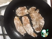 С мяса убрать лишнюю жидкость. Подготовить крахмал. И обвалять филе с обеих сторон (без фанатизма). |