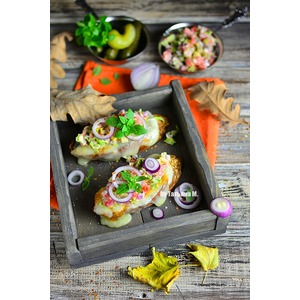 Описание: Отличный вариант быстрой и вкусной закуски из расплавленного и поджаренного сыра и овощной сальсы с маринованной ноткой!