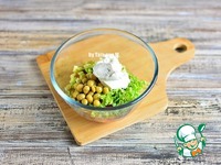 Добавить так же резанное авокадо, рубленную зелень, горошек и творожный сыр. |