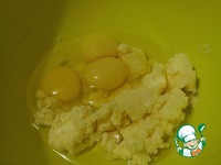 Затем добавить 3 яйца и взбить миксером. |