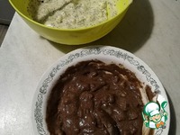 Полученную смесь делим на 2 тарелки и в одну миску кладем мак, в другую какао (у меня несквик) и перемешиваем. |