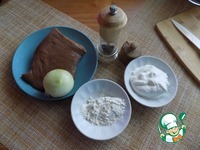 У меня печень свиная. Сняла плёнки, вырезала жилки, помыла и обсушила. Приготовила набор продуктов для приготовления печени. |