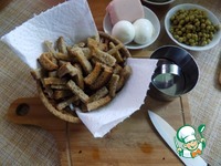 Описание: Идею салата увидела в одной из социальных сетей. Назывался он "Дрова на траве". Я изменила немного состав салата, да и сухари чёрные сделала свои и по-своему. Сытный, вкусный, красивый салат, который можно поставить на праздничный стол. Салат с маринованными огурцами, которыми запаслись многие в сезон и потихоньку начали есть с осени.