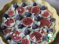 Форму смазать маслом и присыпать мукой. Вылить тесто, уложить нарезанный инжир и ежевику. Присыпать сахаром и миндальными лепестками. |