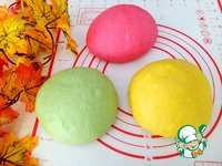 Описание: Этим рецептом, сохраненным из интернета пользуюсь давно. Такой красочный, яркий хлеб пекут в Японии. Очень красивый и вкусный, больше похож на булочку. Очень получается воздушным и нежным, вкусным и простой в приготовлении. Этот хлеб я пеку, чаще на дни рождения внуков и Новый год. Приготовьте такой хлеб на праздничный стол, создайте всем настроение. Наполнители цвета на этот раз -пищевые красители, тут их малое количество, не больше, чем добавляют в крем для тортов. Если для вас это не подходит, вы можете заменить на натуральные продукты; пюре из свеклы, моркови, шпината, тыквы, тогда нужно добавить муки, а так же подойдет -куркума, какао-порошок, молотая паприка.