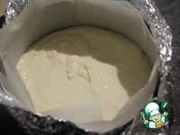 Сделать первый творожный слой: смешать сливочный сыр с сахаром и ванилью. Размешать до однородности. Добавить яйцо и тоже перемешать. Добавить сливки и вмешать муку до однородного состояния. |