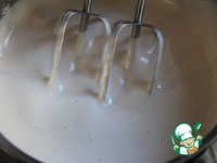 Взбить в теплом состоянии до увеличения объема и пышного состояния (если стекающим тестом нарисовать какой-либо узор, он должен не исчезать сразу). |
