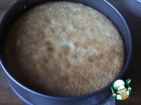 При запекании первого слоя низ зарумянился еще больше. Я срезала его без потери для качества торта. Основа стала еще нежнее! |