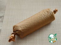 Колбаса в пергаменте и в форме больше по диаметру и готовилась около 2,5 часов. Разницы во вкусе нет никакой. Меняется только форма. Готовую колбасу охладите в холодильнике и можно наслаждаться. |