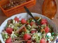 Описание: Этот легкий и вкусный салат станет частым гостем на Вашем столе. К тому же он очень быстро готовится, продуктов минимум. Осень пора, когда на рынке появляются необыкновенные грейпфруты. Если у них ярко красная шкурка, то и внутри мякоть красная, безумно красивая. Салат с таким фруктом очень красиво смотрится, на фоне зелени капусты. Зерна горчицы добавляют пикантности салату. Горчинка грейпфрута делает салат непредсказуемо притягательным.