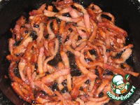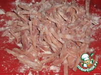 Ветчину нарезать тонкой соломкой, обсыпать мукой. |
