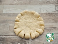 Такую формовку я уже показывала в одном своем рецепте, она мне очень нравится. Каждый шарик раскатайте в лепешку, сделайте по кругу надрезы как на картинке |