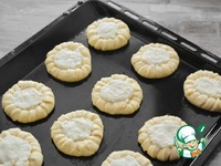Положите заготовки для ватрушек на противень, наполните их начинкой. Дайте подойти около 10 минут |