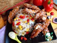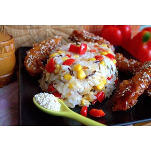 Описание: Яркий полезный гарнир в восточном стиле. Самое долгое в рецепте-сварить рис, остальное завершить очень быстро! Готовим параллельно с основным продуктом, например, у меня курица.