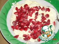 Клубнику порезать на маленькие кусочки-не размораживая(она так легче режется) |