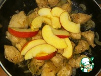 Затем добавить яблоко. Уменьшить огонь, накрыть крышкой и тушить 10 минут. |