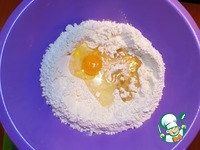 Муку смешиваем с солью, просеиваем. Разбиваем яйцо, добавляем оливкое масло. Немного взболтаем вилочкой. |