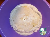 Замешиваем мягкое, не липнущее к рукам тесто. Скатываем в шар, перекладываем в смазанную маслом емкость, накрываем и убираем в теплое место на 40-60 минут. |