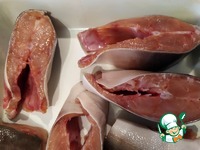 Рыбу (приветствуется форель, сёмга, лосось))) чистим, моем, потрошим и разделываем на стейки. Укладываем в форму. Солим, перчим по вкусу. |