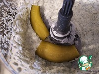Добавляем соленый огурец и ещё немного пробиваем, не страшно, если останутся небольшие кусочки. |