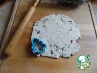Раскатываем тесто скалкой, толщиной ~0,7 см. Я вырежу из теста ёлочки. |