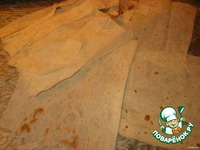 Лаваш нарезать на квадраты и ленты. |