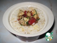 Описание: Люблю порционную подачу как салатов, так и горячих блюд. Рисовая основа гармонично сочетается с обжаренными кусочками курицы, сливочным сыром и пикантными вялеными томатами.