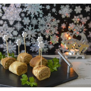 Описание: Предлагаю вам вариант вкусной и красивой закуски для Новогоднего стола - рулетики из блинов с паштетом из куриной печени и маринованных огурчиков.