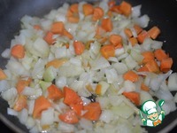 На горячую сковороду наливаем растительное масло и обжариваем морковь и лук на среднем огне при закрытой крышке 10 минут. |