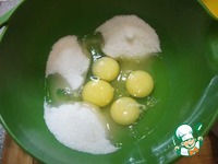 Сверху частями просеять муку и взбить миксером до однородного состояния. |