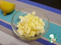 Яблоко очистить от семян и шкурки, нарезать кубиками и сбрызнуть соком лимона. |