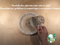 Промываем рис, добавляем стакан холодной воды и ставим в сторонку |