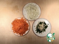 Нарезаем лук, укроп, петрушку, чеснок и натекаем морковь на тёрку. |