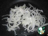 В сковороде с разогретым растительным маслом обжарить лук, нарезанный тонкими полукольцами, на среднем огне 2-3 минуты. |