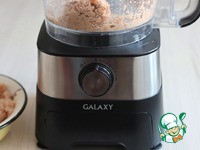 В чашу кухонного комбайна GALAXY GL2300 добавить 400 гр. филе грудки индейки, добавить лук (1 шт.). Измельчить добавленные ингредиенты в фарш. Готовый фарш убрать из чаши кухонного комбайна. |