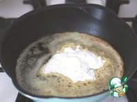 На сковороду добавить 2 ст. ложки сливочного масла, добавить муку (1 ст. ложка), муку слегка прижарить. |