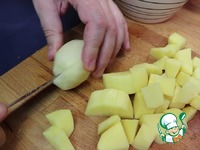 3. Отправляем в закипевший бульон картофель. Пока он варится, займемся зажаркой. |