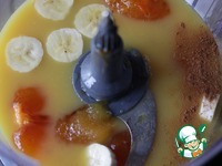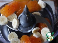 С хурмы снять кожицу, убрать косточки, если они есть. Мякоть сложить в чашу кухонного комбайна, добавить банан, нарезанный на кусочки. |